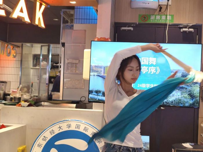 24级学生钟雨桐带来的中国舞《兰亭序》,舞姿优美,韵味十足,将中国传统文化的魅力展现得淋漓尽致;25级全体学生献上的合唱更是精彩纷呈,学校校歌、《我爱你中国》《稻香》三首歌曲轮番上演,他们用嘹亮的歌声表达了对学校的热爱、对祖国的祝福以及对青春的憧憬。