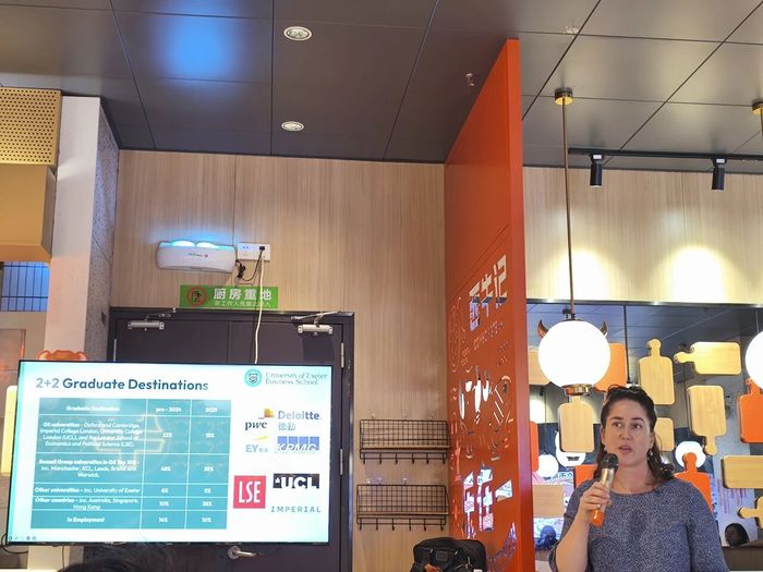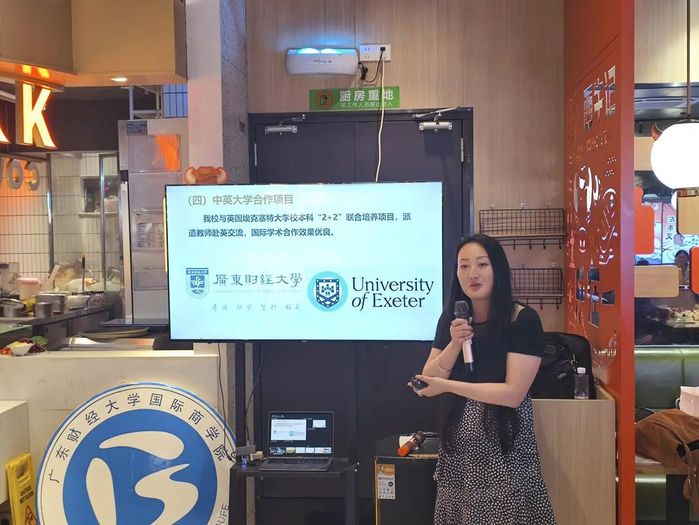刚结束在埃克塞特大学访学的曹梦甜老师分享了访学期间的见闻,立体呈现了埃克塞特大学的学习生活细节,使在场师生如身临其境,有效拉近了同学们与海外名校的距离。