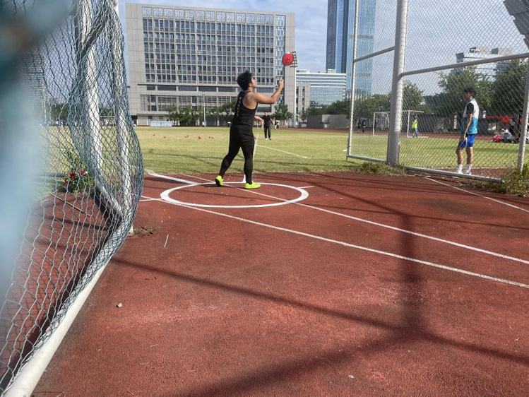 投掷比赛上,他们奋力一掷,用汗水诠释青春激情;