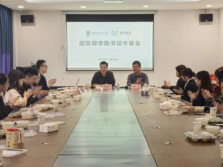 11月26日中午,国际商学院在佛山校区有为书院9栋114会议室举行书记午餐会,学院党委书记郭显军、副书记黄东,辅导员张晓聪、黄达非、陈迪出席,30余名学生代表参加。会议由黄东主持。
