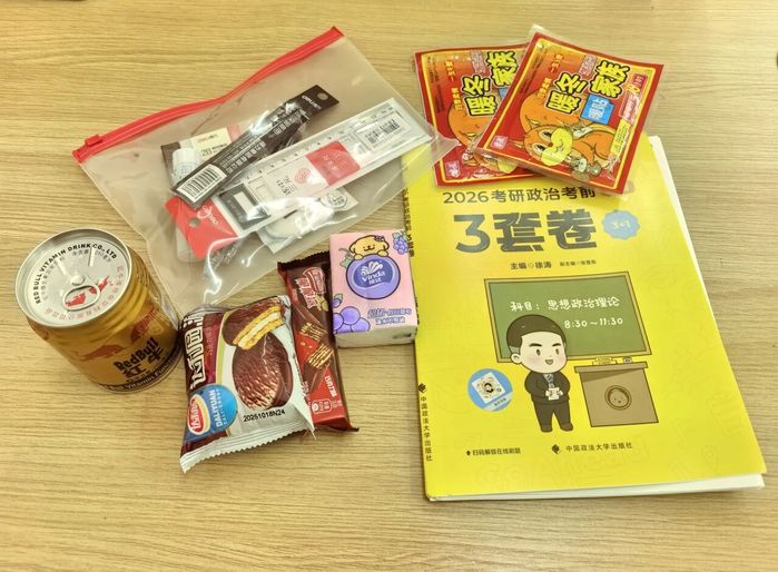 今年的慰问礼包依旧承载着学院对学子“金榜题名”的美好期许,内含寓意笔下生辉的考研专用文具套装、用于快速补充能量的食物饮料、抵御寒冷的暖宝宝,以及实用便携的手帕纸等暖心实用物资。备考的同学们表示,这份关怀让他们感受到了学院大家庭的温暖,更激发了自身奋进的动力。大家将把这份鼓励转化为备考的实际行动,将不负厚望、全力以赴,力争在考场上发挥出最佳水平。