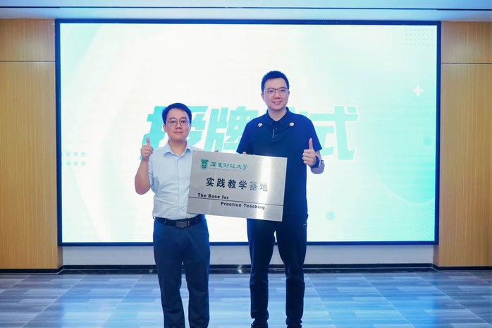 仪式上,罗任飞副院长向广东超凡信息科技有限公司授予“广东财经大学实践教学基地”牌匾。肖炯恩副教授作为分享嘉宾,围绕《跨境电商新格局:全球贸易重构下的战略机遇》主题进行了专题分享。仪式后,两位老师随学校出访团队与惠阳区工业和信息化局刘海涛局长等领导进行了交流。